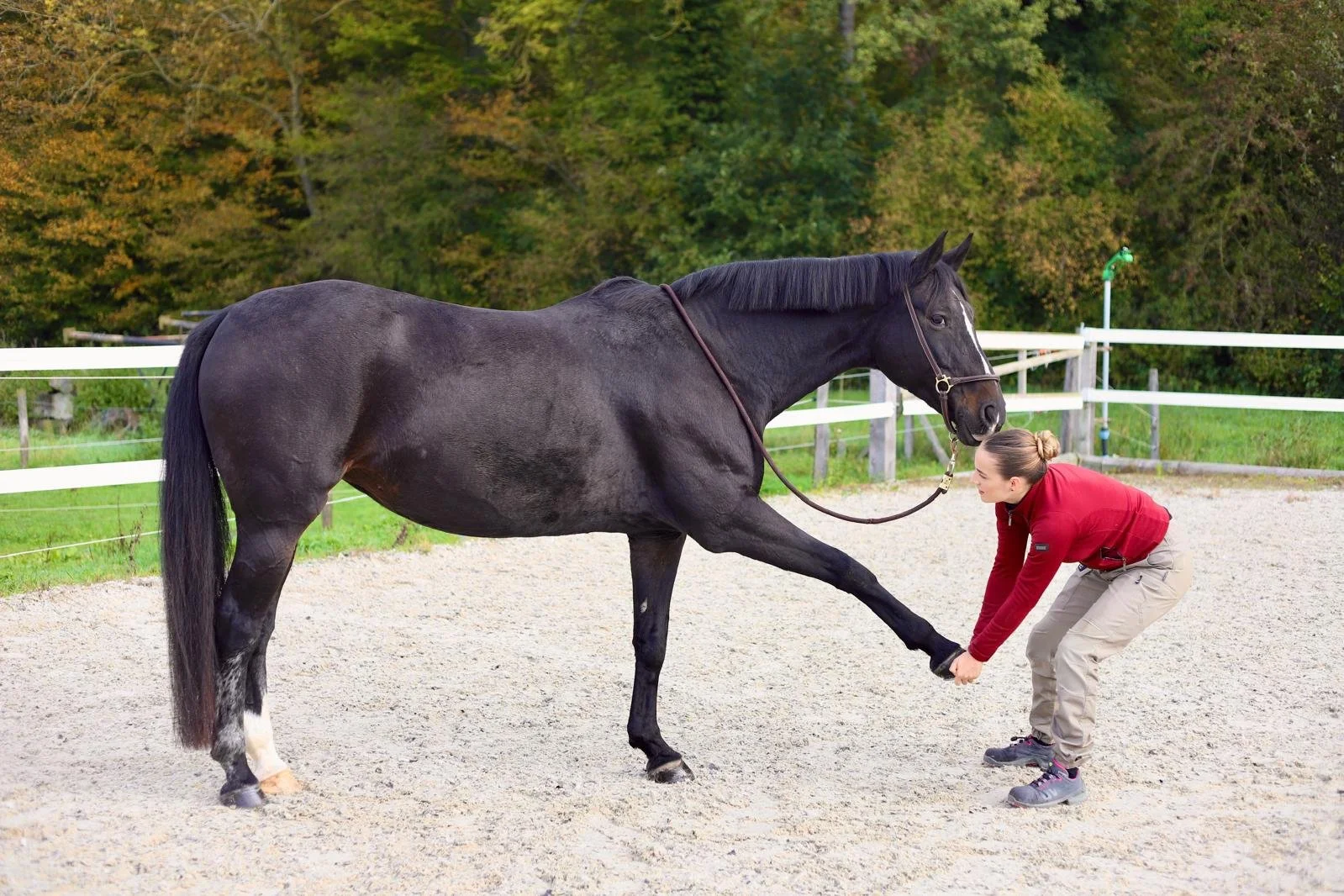 Lässt der Gesundheitszustand gezieltes Training zu, kann ab einem zweiten Termin konkret am Training gearbeitet werden. Dies ist besonders wertvoll während der Rehabilitation oder im Rahmen einer Haltungs- oder Bewegungsumschulung, da das tierärztlich betreute Training eine sichere und effektive Förderung ermöglicht. Grundsätzlich profitiert jedoch jedes Pferd davon, eine Selbsthaltung in positiver Aufspannung zu entwickeln. Dies gilt insbesondere für modern gezogene, hypermobile Pferdetypen. Dabei passe ich die Herangehensweise individuell an Exterieur und Interieur Ihres Pferdes an.